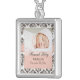 A newborn's picture will look precious in this custom baby photo necklace with a pretty pink and brown damask design. Personalize it with your baby's name and birth date. This makes a beautiful gift for a new mom or new grandmother for Mother's Day or any special occasion. Design © Chrissy H. Studios, LLC.
