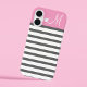 Pink and Charcoal Preppy Stripes Monogram Case-Mate iPhone Case