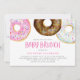 Pink and Chocolate Watercolor Donuts Baby Brunch Invitation
