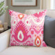Pink and Coral Ikat Print Throw Pillow
