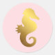 Pink and Faux Gold Foil Seahorse Classic Round Sticker