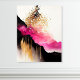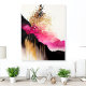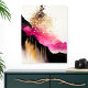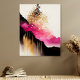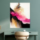 Elevate your space with this stunning pink and gold abstract mountain art. Featuring bold pink gradients, shimmering gold splashes, and dramatic black accents, this acrylic peel and stick art tile adds a modern, luxurious touch to any room. Perfect for contemporary interiors, this piece makes an eye-catching statement.