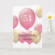 Personalized pink and gold 51st birthday card for her, which features pink and gold balloons on the front which you can easily personalize with her name. A unique birthday card keepsake for her fifty first birthday.