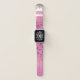 Pretty pink Apple watch band with graphics of pink and gold tone confetti dots. Customize this lovely watch band with your own text.