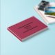 A beautiful gold foil wedding guestbook in deep rose pink color with a floral embilishment