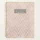 Custom-designed planner notebook featuring pink and gold zig-zag geometric style pattern.