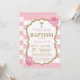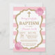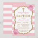 Pink and Gold Glitter Baptism Invitation. Girl Baptism. First Communion. Christening. Child Dedication. Pink and White Stripes. Pink Floral Flower. For further customization, please click the "Customize it" button and use our design tool to modify this template.