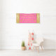 Pink and Gold Happy Birthday Banner, Christian or Your Text or Delete. Type in her Name, Message and Age or Your Text. You, or CALL Designer Linda: 239-949-9090 EST to CHANGE the Pink Background and Gold Text COLORS. You, or Designer Linda can also TRANSFER this Design to other pretty birthday party supplies for her, birthday decorations and gifts.