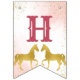 Pink and gold horse equestrian cowgirl Happy Birthday bunting flags. On a first and last flags can put your girls name.