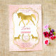 Pink and gold horse saddle up birthday invites