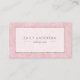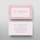 Custom-designed business cards featuring simple clean design on pink marble texture background.
