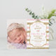 Chic pink and gold new baby girl birth announcement card. Personalize it with your baby's birth stats and your thank you message easily and quickly, simply press the customize it button to further re-arrange and format the style and placement of the text and to add a photo.