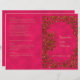 This elegant design, called Pink and Gold Peacock Indian Wedding, has a pretty pink background. On the front of the invitation there is a gold glitter style border design with a beautiful peacock on the right. Towards the bottom is the couple's name in gold. The back has a pink background with your text in gold. This set has invitations, save the date cards, response cards, thank you cards, table number cards, wine labels, wedding programs, and many more day-of wedding stationery pieces, favors, and gifts to coordinate. All elements are printed on our high quality products, they do not include any real gold, jewels, embossing, or other textile elements. All designs are copyright Noteable Expressions, Inc. All rights reserved.