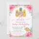 Pink and Gold Pineapples & Flamingo Kids Birthday Invitation
