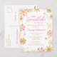 This elegant and glamorous invitation postcard features watercolor pink and gold faux glitter snowflakes and sparkles on a white background. It is perfect for a winter or Christmas themed baby shower.