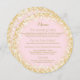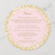 Elegant gold and pink sparkle light effect design small round menu. Personalize text as preferred and add the bride and groom's name or other text on back.