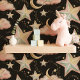 Transform your space into a celestial dreamscape with this enchanting wallpaper. Shimmering stars in shades of pink and gold dance among crescent moons and fluffy clouds, creating a captivating and magical atmosphere. This peel and stick wallpaper is easy to apply and remove, making it perfect for adding a touch of whimsical charm to bedrooms, nurseries, or any space that needs a touch of celestial magic.