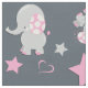 This delightful pattern features pink, and gray, baby elephants with pink, and gray, stars and pink hearts. Perfect for elephant lovers.