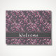 This pink and gray Welcome doormat has a scattered cherry blossom petals abstract floral pattern. You can personalize it by changing the word "Welcome" to a family name, or Hello, or something else if you wish.