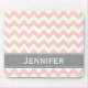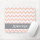 This cute and stylish pink and gray chevron stripe mousepad with an alternating pink and white pattern can be personalized with your name on the PRINTED contrast stitch ribbon look design. Designed by Chrissy H. Studios, LLC. All Rights Reserved.