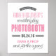8 x 10" size custom wedding photo booth sign poster print can be personalized with bride and groom names and wedding date text. Sign reads "Welcome to Bride and Groom's wedding day photobooth, wedding date (xx.xx.xx), Grab a prop and strike a pose!". Pink, charcoal gray and white colors.