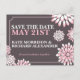 Sweet and cute save the date postcard with pink and grey floral pattern. Customize the wording and font to fit your taste. Visit my store for variation of this design on wedding invitation, address label and more.