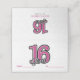 Elegant white floral damask and pink glitter numbers and gray glitter letters, sweet 16