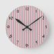 Pink and Gray Stripes Pattern Round Clock