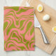 Pink and Green 1970s Retro Modern Swirl Kitchen Towel