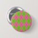 A pretty pink and green argyle pattern with black accents on a pin back button