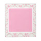 This notepad features a design with a light pink and pale green damask border. The center square is a coordinating pale pink.