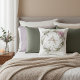Pink and green floral wreath personalized throw pillow