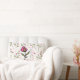 A lumbar pillow with your customized name and pretty pink flower inside a square frame with a pink border. The background is a pattern with hand drawn pink wildflowers with long green stems and leaves on a eggshell white colored background. Pink circles and sprigs also decorate the design. Whimsical and pretty floral design.