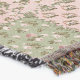 A quality printed throw has its advantages. This is a much finer weave throw than its loopier cousins, and though lighter, it is worth the investment for custom room accessorizing. The back is much prettier than the typical brown, and the fringe on the long sides very vivid, the selvage nicely done. Before photographing, I washed the throw in cold water, delicate, with a thicker woven throw the same size. On tumble dry low, this throw was dry in half the time as the other. This is a very practical quality if you use throws for furniture covers or to wrap up in frequently. The sleekness of the fabric makes it a great layer for accenting or protecting without the feeling of sitting on too much stuff. Perfect for napping or when you feel a light chill coming on. The color printing is beautiful and on this fabric, matched the design and color of my Photoshop image. This is an advantage for blending room fabrics and colors. The fringe on the short sides prints the colors from the design image and therefore varies from the side fringe. I streaked a white fractal line through the plaid pattern to give the illusion of weaving. This printed as crisp as an illusory thread, and put some white in the short side fringe, showing another advantage of print vs loomed- for artistic purposes, line lines, detail, and color integrity can be planned and preserved. My loomed throws have color limitations and more of a needlepoint texture. Print throws reproduce an exact image. The throw felt a little stiff straight out of the package, but this went away in the first delicate wash. Of course I searched the wash water for ink or bleeding and there was none.