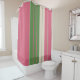 Pink and Green Stripes Mid-Century Modern Shower Curtain