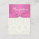 ** Please note that the ribbon and jewels are printed images, and are not real. This pink and ivory damask enclosure card matches the Sweet Sixteen invitation and other items shown below. You can change the word "reception" if you need it to be a directions/map card. If there are any other matching items you require, please email niteowlstudio@gmail.com.