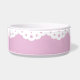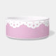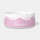Pretty eyelet lace design trims the top of this pretty pink and white pet bowl. Personalize with the name of your precious one.