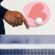 Cute light coral heart shape against solid pink background.