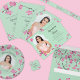 Create personalized plates for your quinceañera or for other special events. These paper plates are mint green with pink cherry blossom flower accents and are ready to be customized with your own text. There's a spot to add your event name in script lettering and the date in print lettering below.