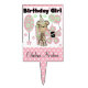 Pink and Mint Monkey 5th Birthday Cake Topper, easy to customize with her name before ordering, features a monkey witha party hat, balloons, birthday gifts, an lots of pretty flowers and polka dots.