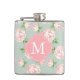 Pink and Mint Vintage Roses Pattern Monogrammed Flask