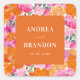 Pink and Orange Bright Summer Floral Wedding Square Sticker