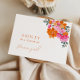Surprise your flower girl with this pretty card, featuring vibrant, bright pink and orange watercolor floral and editable text. Easily customize this card by using the "personalize" option. For more advanced edits, such as font style/color change please use the "edit using design tool" option.