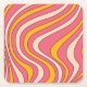 Retro style waves geometrical pattern illustration with shades of pink, orange and black lines stripes decoration for everybody who likes groovy retro style design and color palette.
