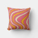 Pink and orange retro style waves throw pillow