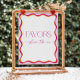 "Flower Bar - make a bouquet to take on your way" sign with pink and orange wavy border for a modern and colorful Bridal Shower.