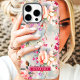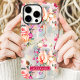 This beautiful phone case features a watercolor design of pink and peach flowers accented with soft greenery on a muted gray background. The vibrant floral arrangement exudes timeless charm and elegance, perfect for those who appreciate feminine and sophisticated designs. A customizable nameplate in bold red adds a personal touch, making this case a stylish and unique accessory for daily use or as a thoughtful gift.