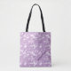 This tote bag features a light purple and pink camouflage pattern front and back. Fun bag for any woman with who loves a little bit of camo. Name is angled on the bottom of the front and can easily customize to read your name or any other text you wish. Font color and style are can all be personalized.