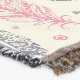 A quality printed throw has its advantages. This is a much finer weave throw than its loopier cousins, and though lighter, it is worth the investment for custom room accessorizing. The back is much prettier than the typical brown, and the fringe on the long sides very vivid, the selvage nicely done. Before photographing, I washed the throw in cold water, delicate, with a thicker woven throw the same size. On tumble dry low, this throw was dry in half the time as the other. This is a very practical quality if you use throws for furniture covers or to wrap up in frequently. The sleekness of the fabric makes it a great layer for accenting or protecting without the feeling of sitting on too much stuff. Perfect for napping or when you feel a light chill coming on. The color printing is beautiful and on this fabric, matched the design and color of my Photoshop image. This is an advantage for blending room fabrics and colors. The fringe on the short sides prints the colors from the design image and therefore varies from the side fringe. I streaked a white fractal line through the plaid pattern to give the illusion of weaving. This printed as crisp as an illusory thread, and put some white in the short side fringe, showing another advantage of print vs loomed- for artistic purposes, line lines, detail, and color integrity can be planned and preserved. My loomed throws have color limitations and more of a needlepoint texture. Print throws reproduce an exact image. The throw felt a little stiff straight out of the package, but this went away in the first delicate wash. Of course I searched the wash water for ink or bleeding and there was none.