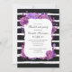 Pink and purple flower. Striped bachelorette party Invitation